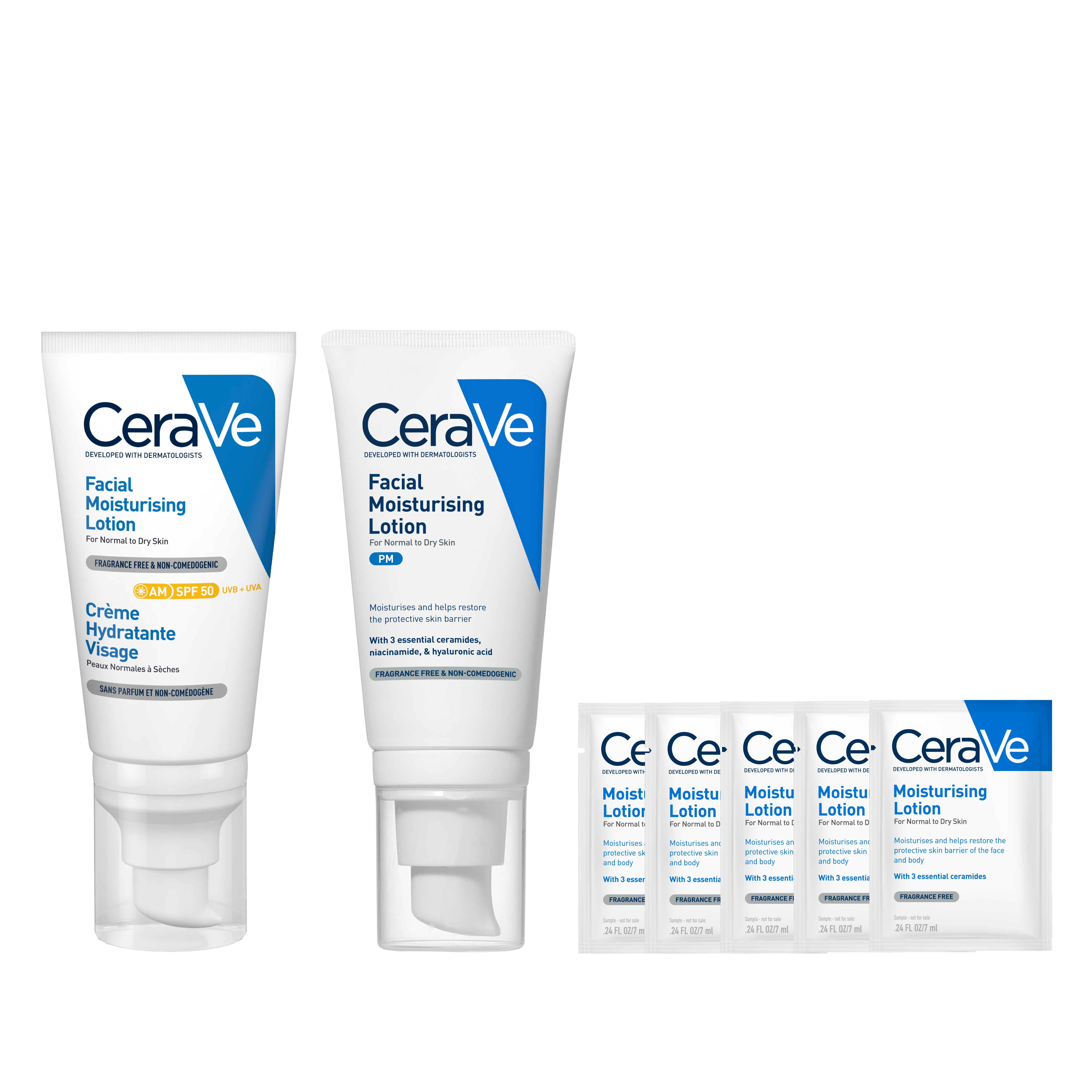 เซราวี เฟเชียล มอยซ์เจอร์ไรซิ่ง โลชั่น (PM) สูตรสำหรับผิวธรรมดา-ผิวแห้ง ผสานเซราไมด์ที่จำเป็นต่อผิว 3 ชนิด ไฮยาลูรอนิก แอซิด ไนอะซินาไมด์ พร้อมเทคโนโลยี MVE กระจายความชุ่มชื้น ฟื้นบำรุงผิวให้ชุ่มชื้นยาวนาน 24 ชม. ไม่ก่อให้เกิดการอุดตัน ปราศจากน้ำหอม ผ่านการทดสอบบนผิวบอบบางมีแนวโน้มระคายเคืองง่าย พร้อมเนื้อสัมผัสบางเบา ไม่เหนียวเหนอะหนะ